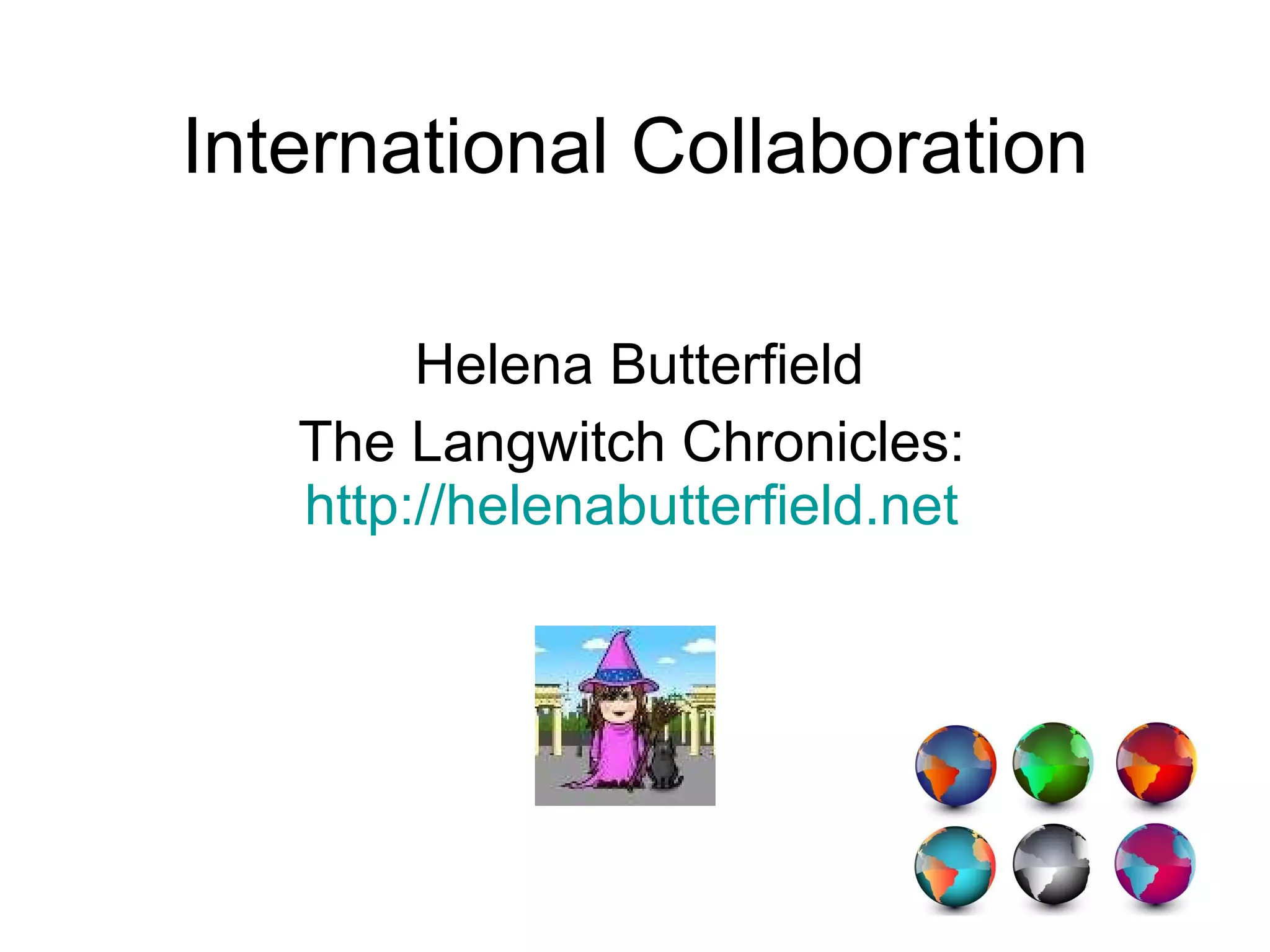 This document discusses international collaboration opportunities for schools. It describes the UK International School Award which recognizes international work in schools. It also describes eTwinning, an online platform that enables teachers and students from 32 European countries to collaborate on curriculum projects. The document provides suggestions for getting started with eTwinning, including registering, finding partners, and project ideas that have worked like blogging and wiki projects.