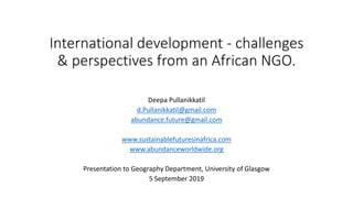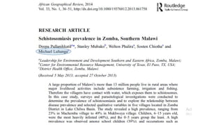 The document discusses the Lake Chilwa Basin Climate Change Adaptation Programme (2010-2017) aimed at enhancing the resilience of 1.6 million people while addressing issues related to schistosomiasis (bilharzia), a neglected tropical disease prevalent in Malawi. It highlights the risk of increased schistosomiasis infections due to irrigation projects and the importance of incorporating disease control in climate change initiatives. The Sustainable Futures in Africa network emphasizes the importance of locally specific approaches to avoid unintended consequences of development projects.