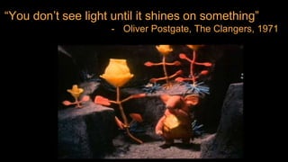 The document discusses various aspects of light, including its properties, how it interacts with matter, and its perception by different organisms. It highlights the electromagnetic spectrum, including radio waves, microwaves, infra-red, visible light, ultraviolet, x-rays, and gamma rays, explaining their sources and effects. Additionally, it touches on cultural references to light and darkness, as well as the implications of light for natural phenomena and artistic representations.