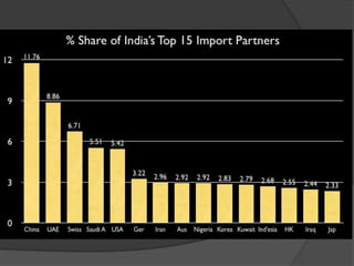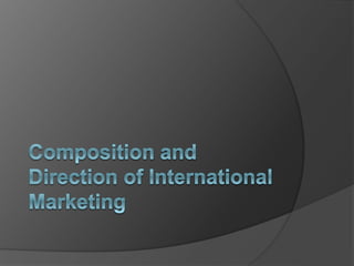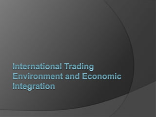 The document discusses the international marketing environment (IME), emphasizing its complexities and the various elements that influence international business operations, such as political, economic, and cultural factors. It highlights the importance of understanding customer values, competition, and the challenges faced in capital and trade economics globally. Additionally, it details the types of economic systems, market stages, and the impact of geopolitical relations on marketing strategies.