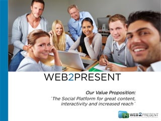 Web2Present offers various online marketing and event services to help universities and business schools recruit international students. This includes conducting webinars to generate leads and attract new students from targeted audiences around the world. Web2Present handles the full process from planning, promotion, hosting the live webinar, and following up with attendees. Major clients include Sorbonne University and IE Business School, who saw increased student awareness, engagement, and enrollments through Web2Present's webinar services.