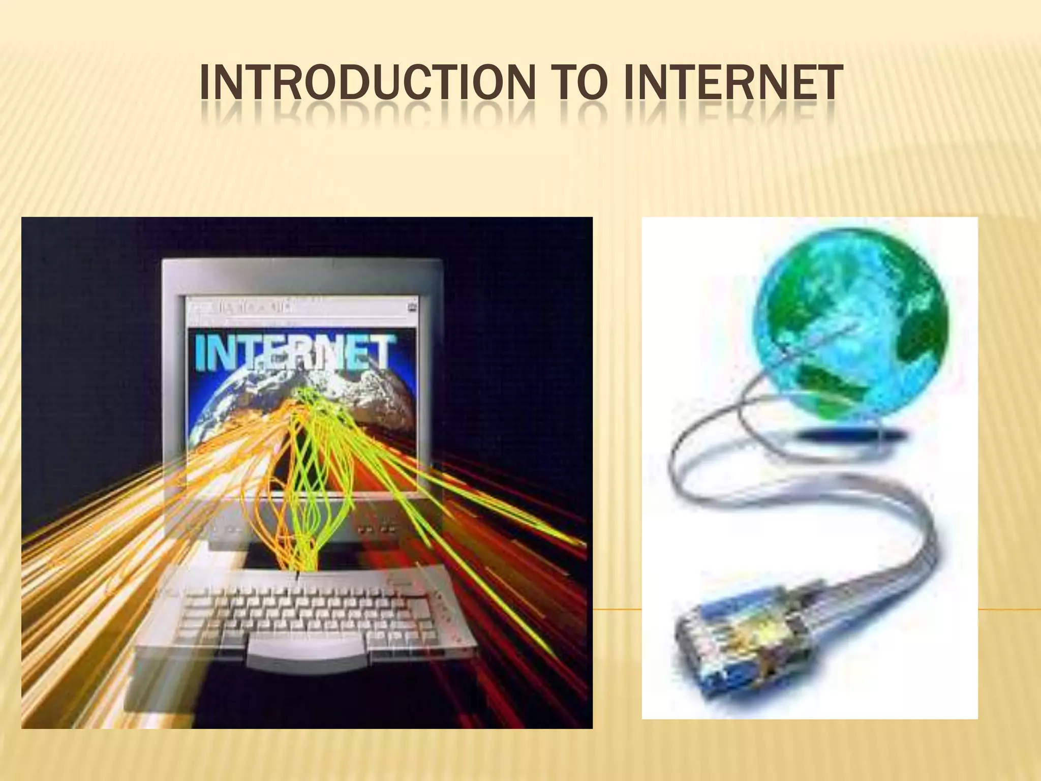 The document provides an introduction to the history and workings of the Internet. It discusses: