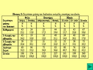 --- 53,4% των εφήβων χρησιμοποιεί το Διαδίκτυο για χρονικό διάστημα