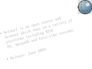 The document provides histories of various web browsers including Internet Explorer, Mozilla Firefox, Google Chrome, Opera, Safari, Maxthon, Flock, Avant Browser, Deepnet Explorer, SeaMonkey, Camino, Netsurf, and Phase Out. It discusses the origins and key people involved in each browser's development as well as some of their version histories and distinguishing features.