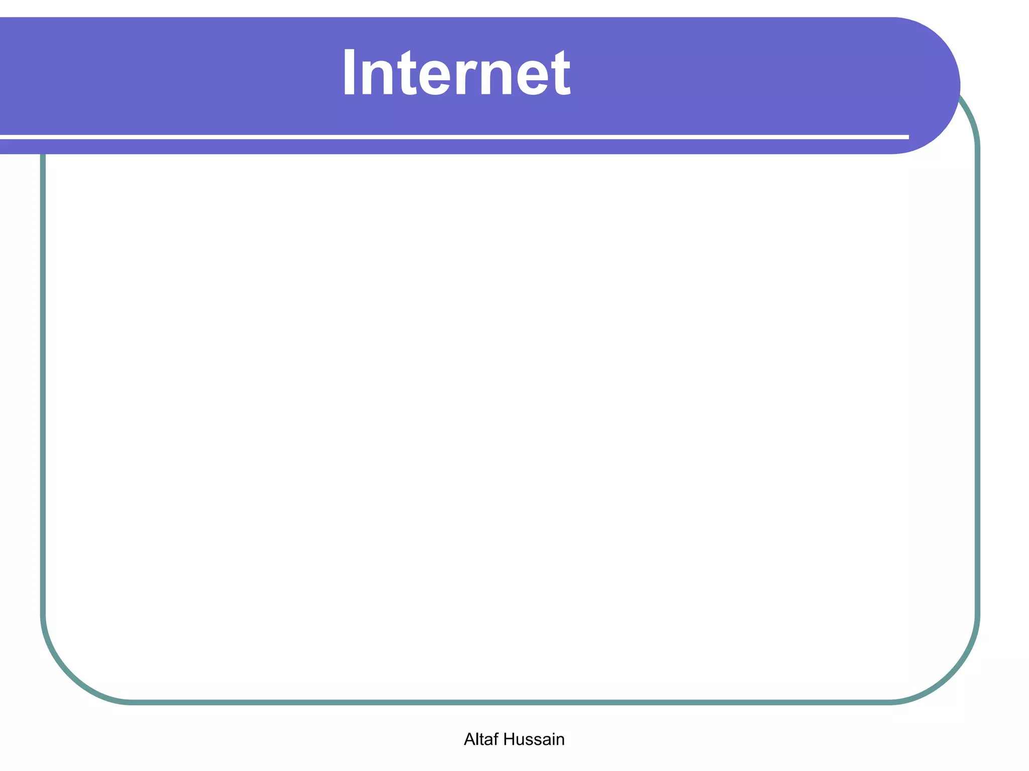 The document provides information about the internet including its history, structure, governance and modern uses. It discusses how the internet began as a US military program and was commercialized in the late 1980s. It also describes internet protocols, the scale-free network structure, and governance by ICANN. Internet service providers are defined as companies that provide customers access to the internet using various connection technologies. Common ISPs in Pakistan are also listed.