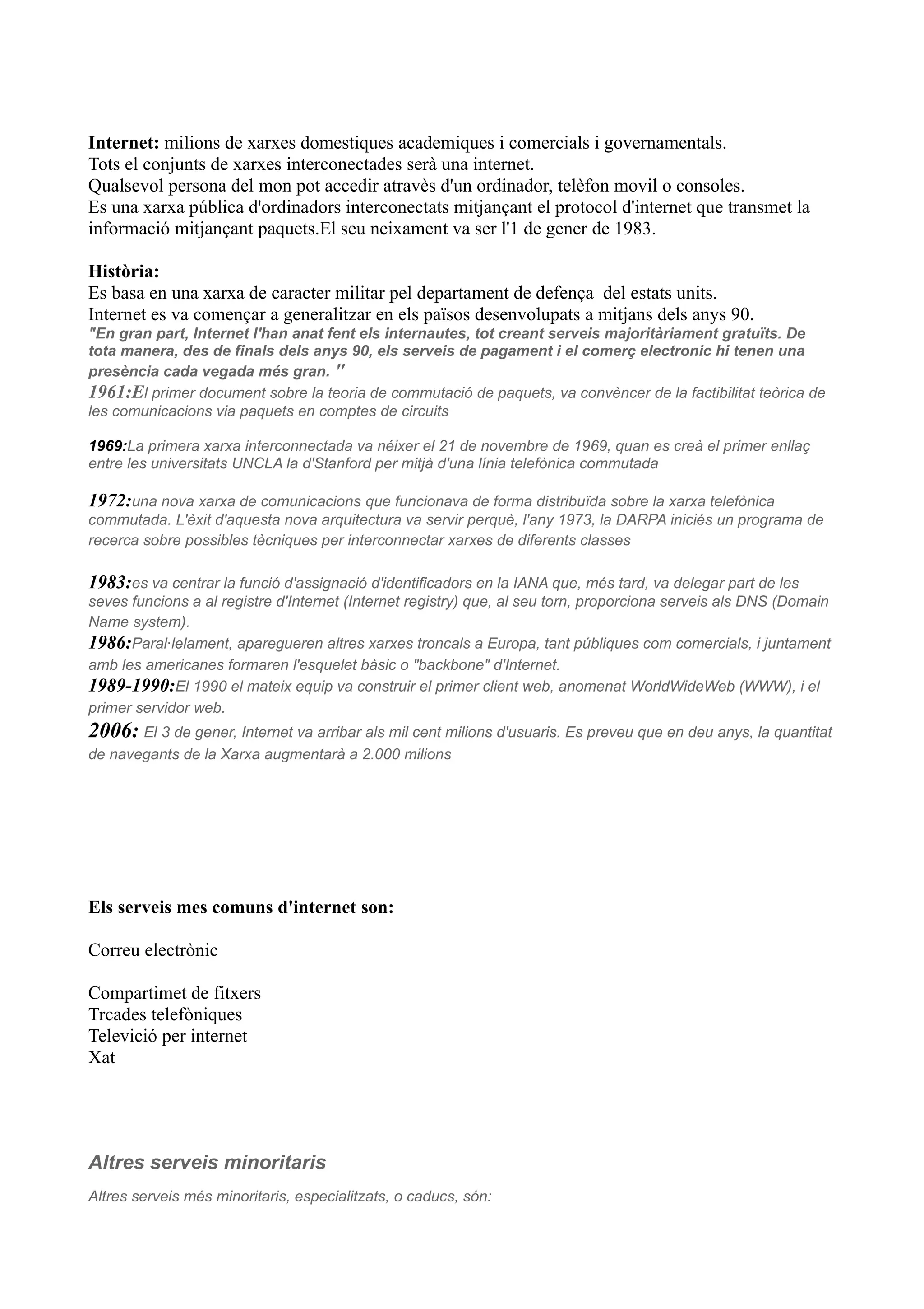 Internet: milions dexarxes domestiques academiques i comercials i governamentals.