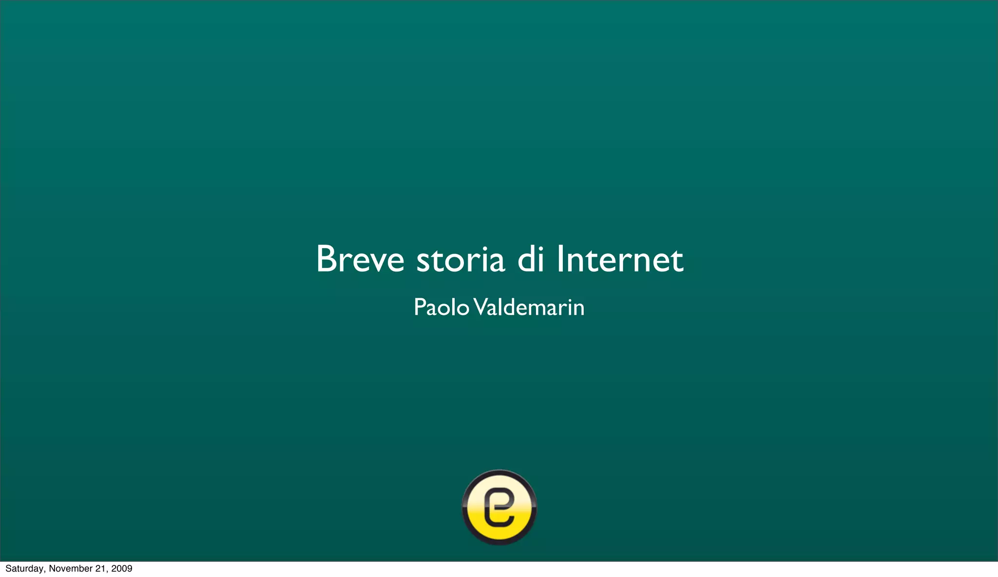 This document provides a brief history of the development of the Internet. It describes how ARPANET was developed in the 1960s as a network to enable communication between computers and allow data transfer to continue even if parts of the network failed. In the 1970s, TCP/IP was created as the fundamental communication protocol of the Internet, and in 1989 Tim Berners-Lee invented the World Wide Web at CERN, creating HTML and the first web browser and server. The document then discusses the evolution of the Internet from the primarily commercial Web 1.0 to the more user-focused Web 2.0, and how relationships between people and companies have changed with the rise of social media and more two-way communication online.