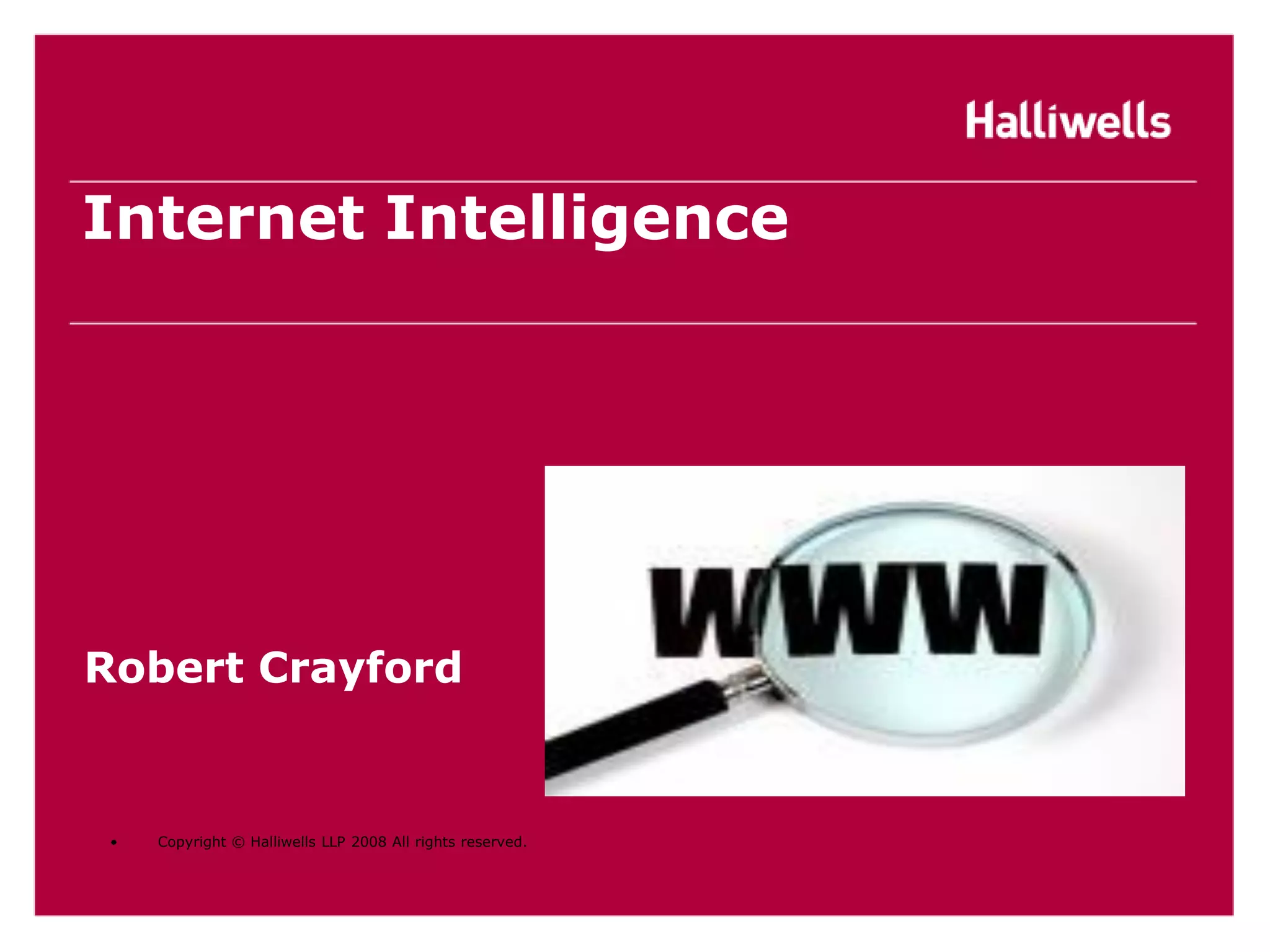 The document discusses various aspects of internet intelligence such as open source searching, deep web searching, social networking sites, investigator footprints, and tracing emails and IP addresses. It provides details on how search engines work and highlights that less than half of the searchable web is fully searchable on any single search engine. The document aims to educate on techniques for online research and investigation.