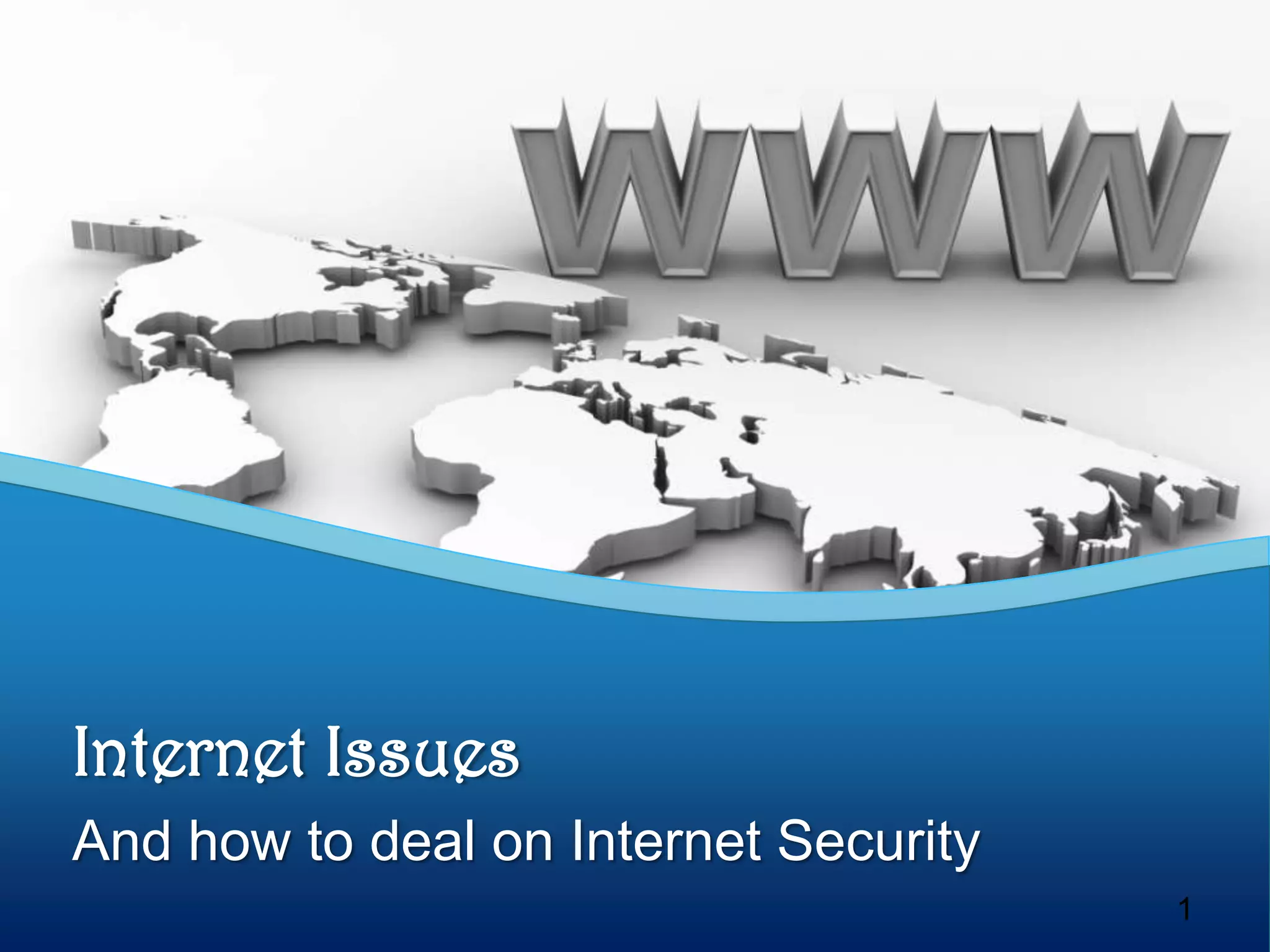 This document discusses internet security. It defines security as freedom from risk or danger and safety. It also discusses why security is needed, such as to protect financial information, medical records, and trade secrets. Those at risk include financial institutions, internet service providers, government agencies, and anyone on a network. Common security attacks are discussed like packet sniffing, firewalls, and social engineering. Countermeasures to these threats include encryption, access control with firewalls, education, and monitoring who has access to resources. In conclusion, while many solutions exist, humans remain vulnerable to manipulation and it is important to stay aware of latest security issues.
