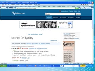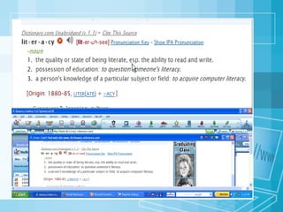 The document discusses the importance of internet literacy for students and outlines several key points: