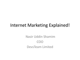 This document provides an overview of different internet marketing strategies across various platforms. It discusses how to effectively utilize YouTube, Twitter, LinkedIn, Instagram, Reddit, Google Drive/Slides, Pinterest, content marketing, Google+, Facebook, and email marketing. Specific tips are provided for each platform on using hashtags, engaging others, optimizing profiles and posts, and incorporating links to drive traffic to websites and blogs.