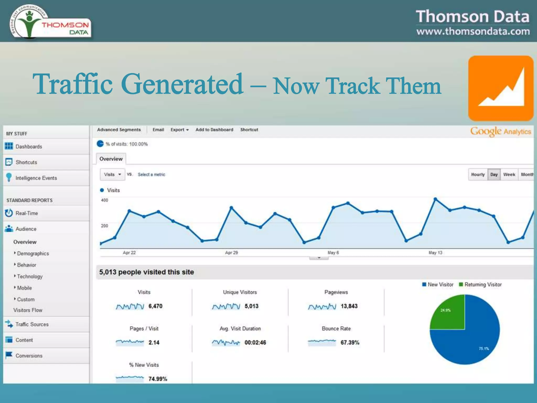 The document discusses the significant impact of the internet on American lives, highlighting that 79% of Americans go online, spending an average of 13.3 hours weekly. It emphasizes the importance of effective online marketing strategies such as SEO, social media, and email marketing, which are vital for reaching target audiences and generating leads. Thomson Data is mentioned as a reliable partner for marketers, providing extensive databases to enhance online marketing efforts.