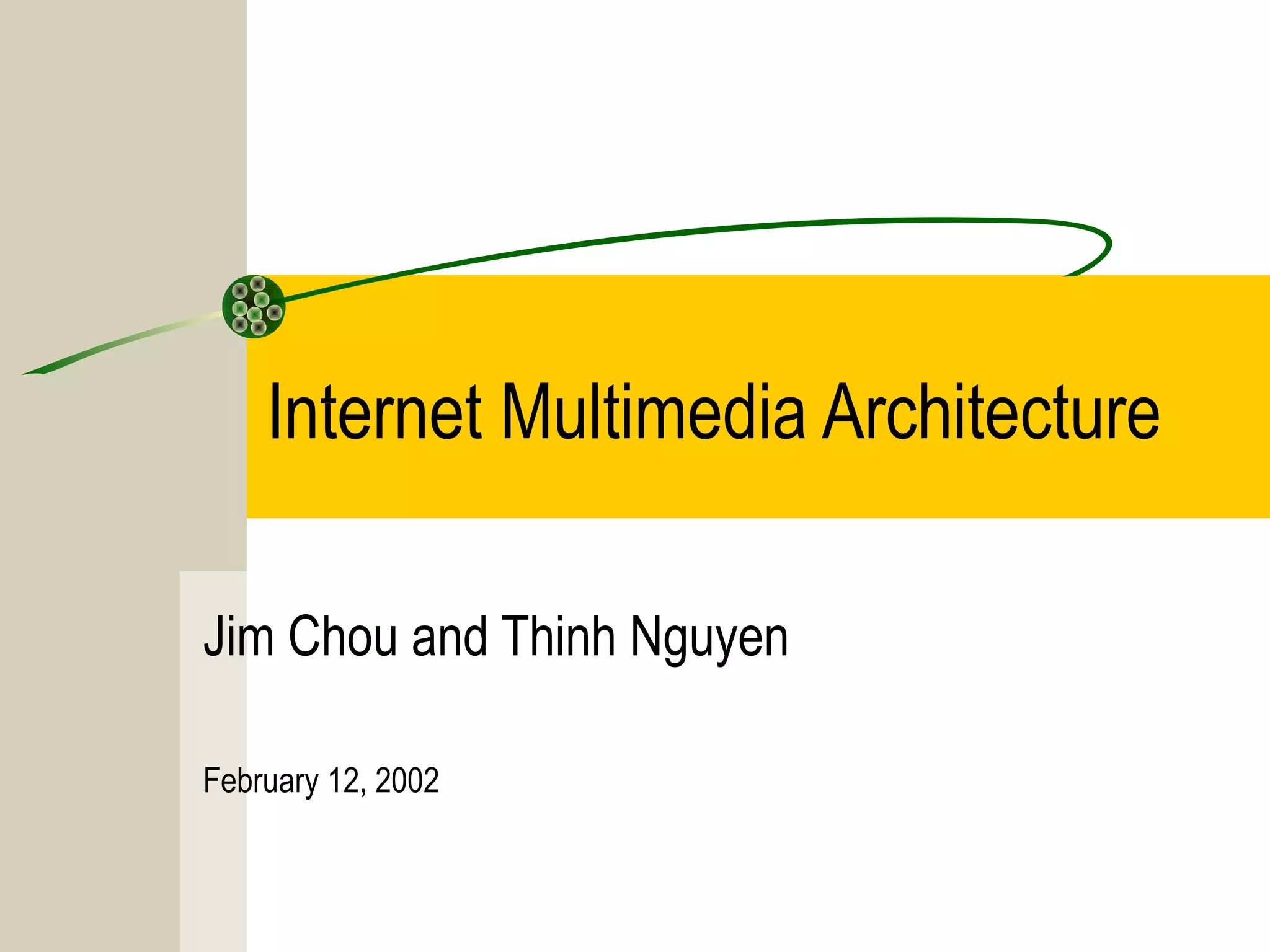 The document provides an overview of Internet multimedia architecture and protocols. It describes key signaling protocols like SIP, SDP, and H.323 for setting up multimedia sessions over IP networks. Streaming protocols like RTP, RTSP, and HTTP are covered for transporting media. Quality of service mechanisms like RSVP and DiffServ are also summarized. Common multimedia applications including voice, video, and wireless are briefly outlined. The multimedia protocol stack and functions of components in signaling architectures for SIP and H.323 are defined at a high level. An example call flow is given to illustrate how H.323 signaling works through a gatekeeper to set up a call between two terminals.
