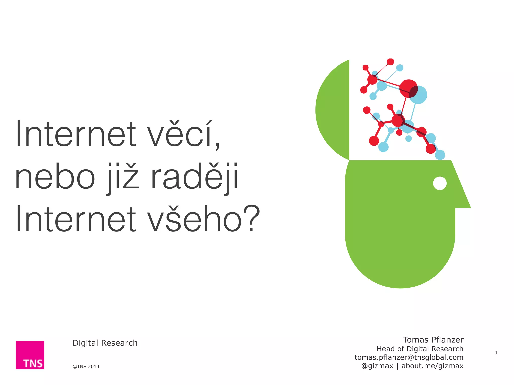 věcí, nebo již raději Internet všeho? 1 Tomas Pflanzer Head of Digital Research tomas.pflanzer@tnsglobal.com @gizmax | about.me/gizmax