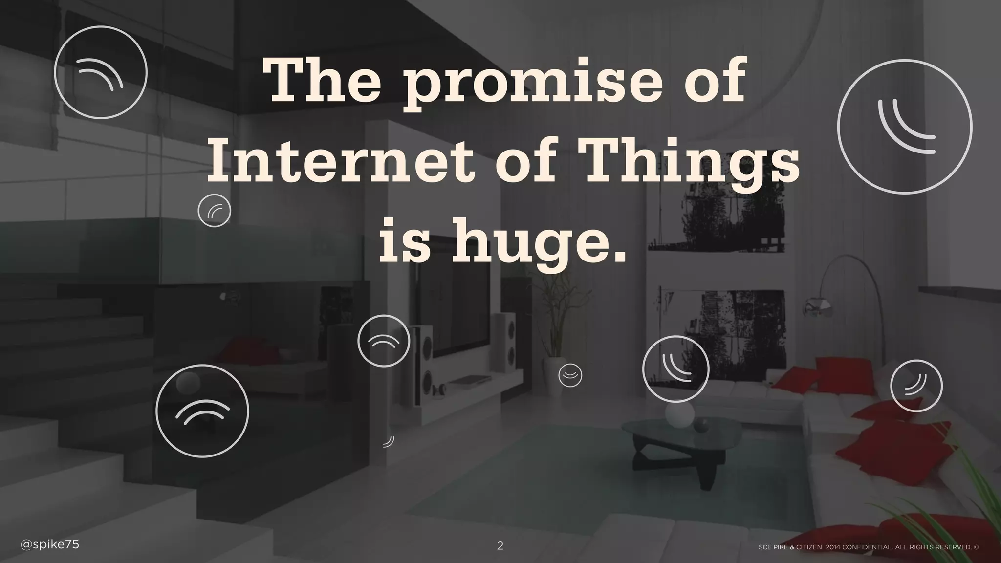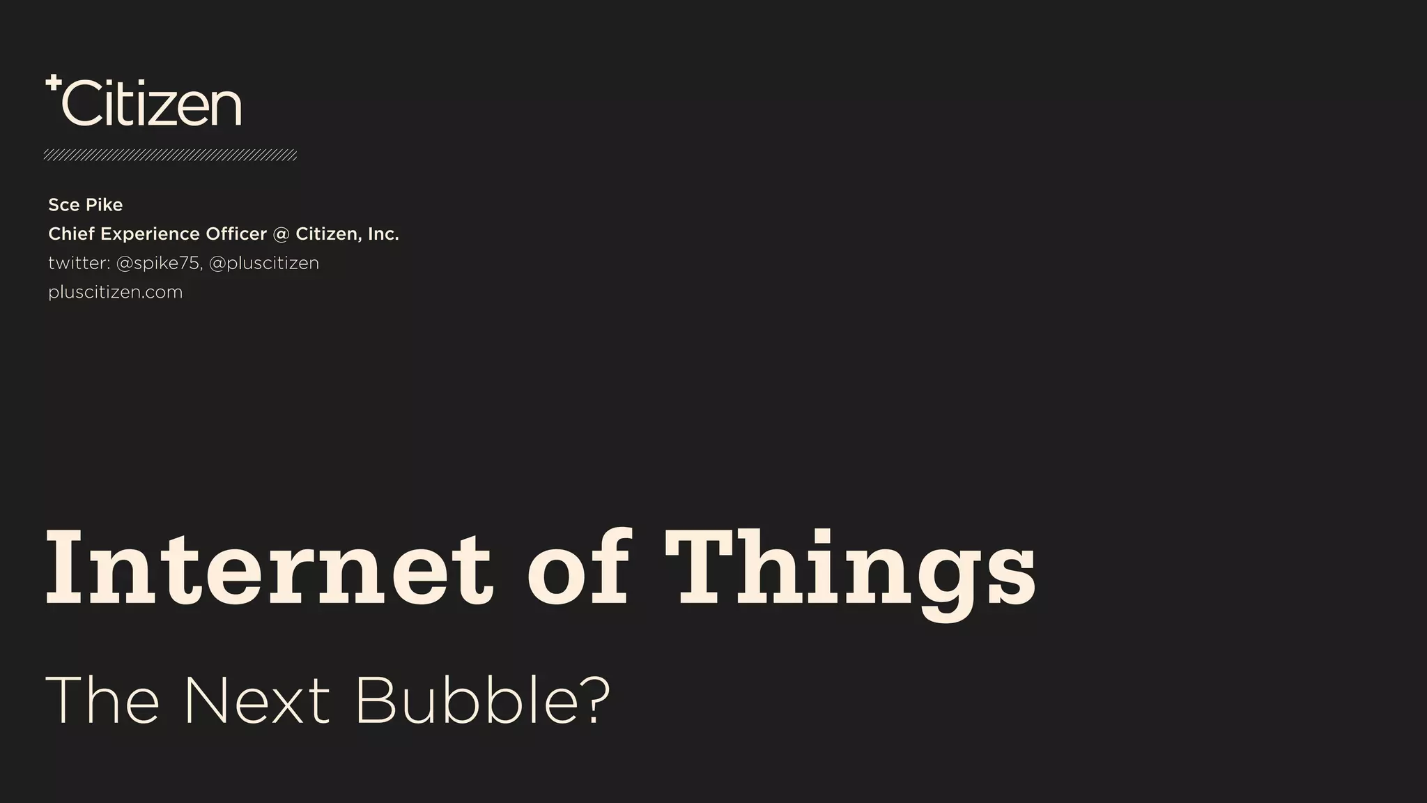 The document discusses the potential of the Internet of Things (IoT) and its current state, emphasizing that while the number of connected devices is projected to grow, substantial barriers such as privacy concerns and high costs may hinder adoption. It stresses the importance of letting users drive the evolution of IoT solutions rather than being tech-centric, proposing a shift towards connecting people instead of just devices. The presentation concludes that achieving tech standardization, privacy resolution, and creating user value are crucial for realizing the IoT's full potential.