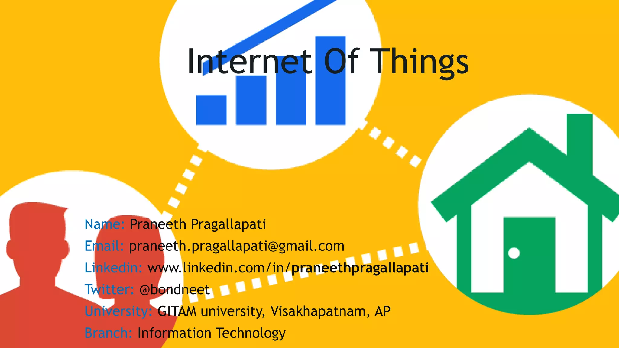 The document discusses the Internet of Things (IoT), highlighting its role as a network of connected devices that enhance user interaction and automation, particularly in energy management, health monitoring, and transportation systems. It anticipates significant advancements by 2020, with billions of devices interconnected, enabling functionalities like remote control and smart energy usage. The author expresses a strong interest in developing IoT applications that improve home security and efficiency.