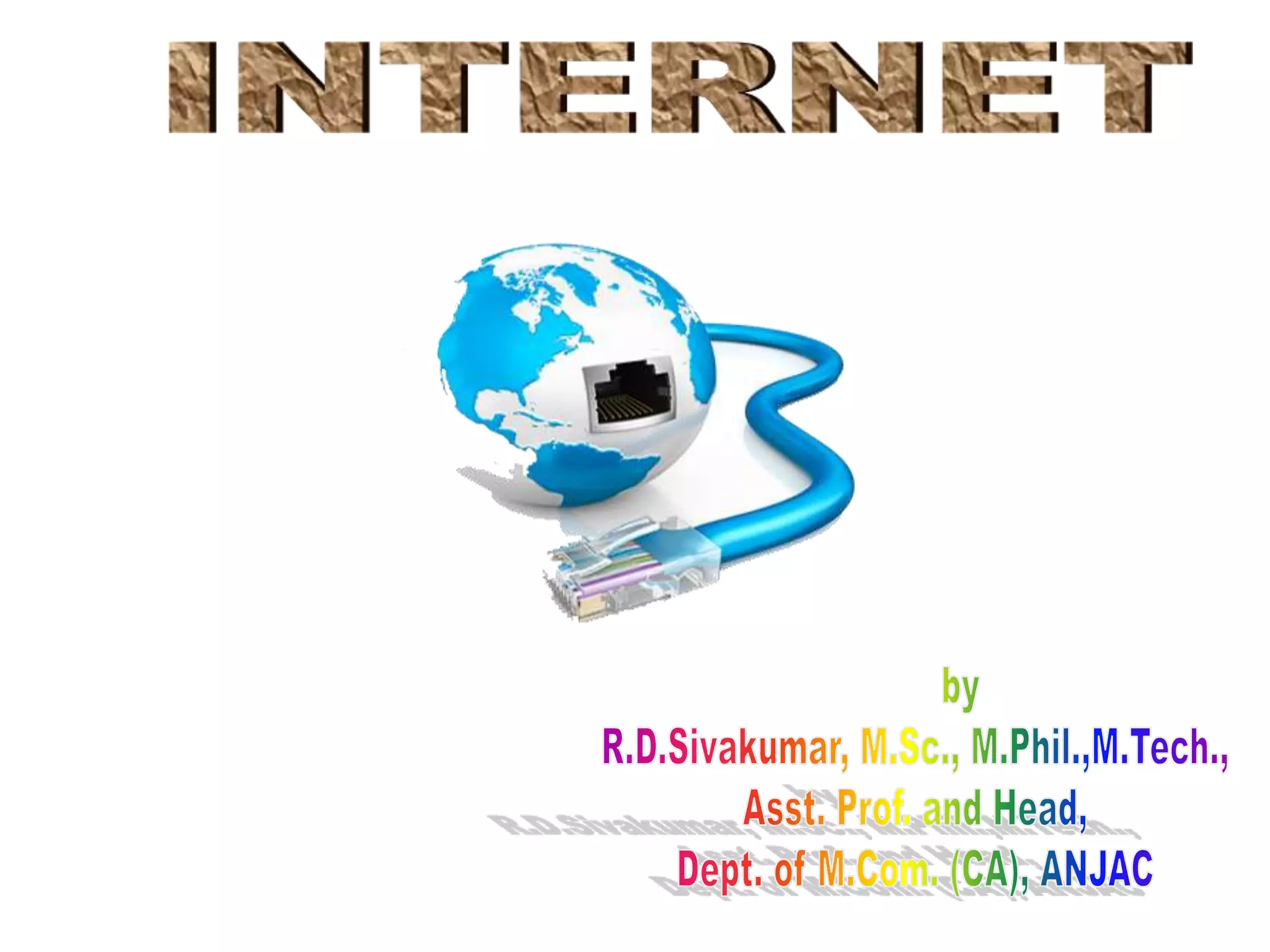 This document discusses the basics of how the internet works and its applications. It covers how the internet allows people to communicate via email, chat, and newsgroups. It also explains how the internet enables accessing information through file transfer and browsing websites. Key components that make the internet function are discussed such as modems, servers, protocols, IP addresses, browsers, and search engines.