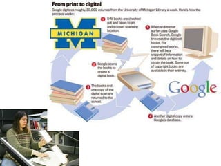 This document provides tips and strategies for making internet searches more productive. It demonstrates how to effectively use keywords and search operators in Google to find specific types of information and filter results. Various Google tools are described that can help organize searches, including Google Scholar, Google News, Google Alerts, and options to customize search experiences for students or collaboratively with other teachers.