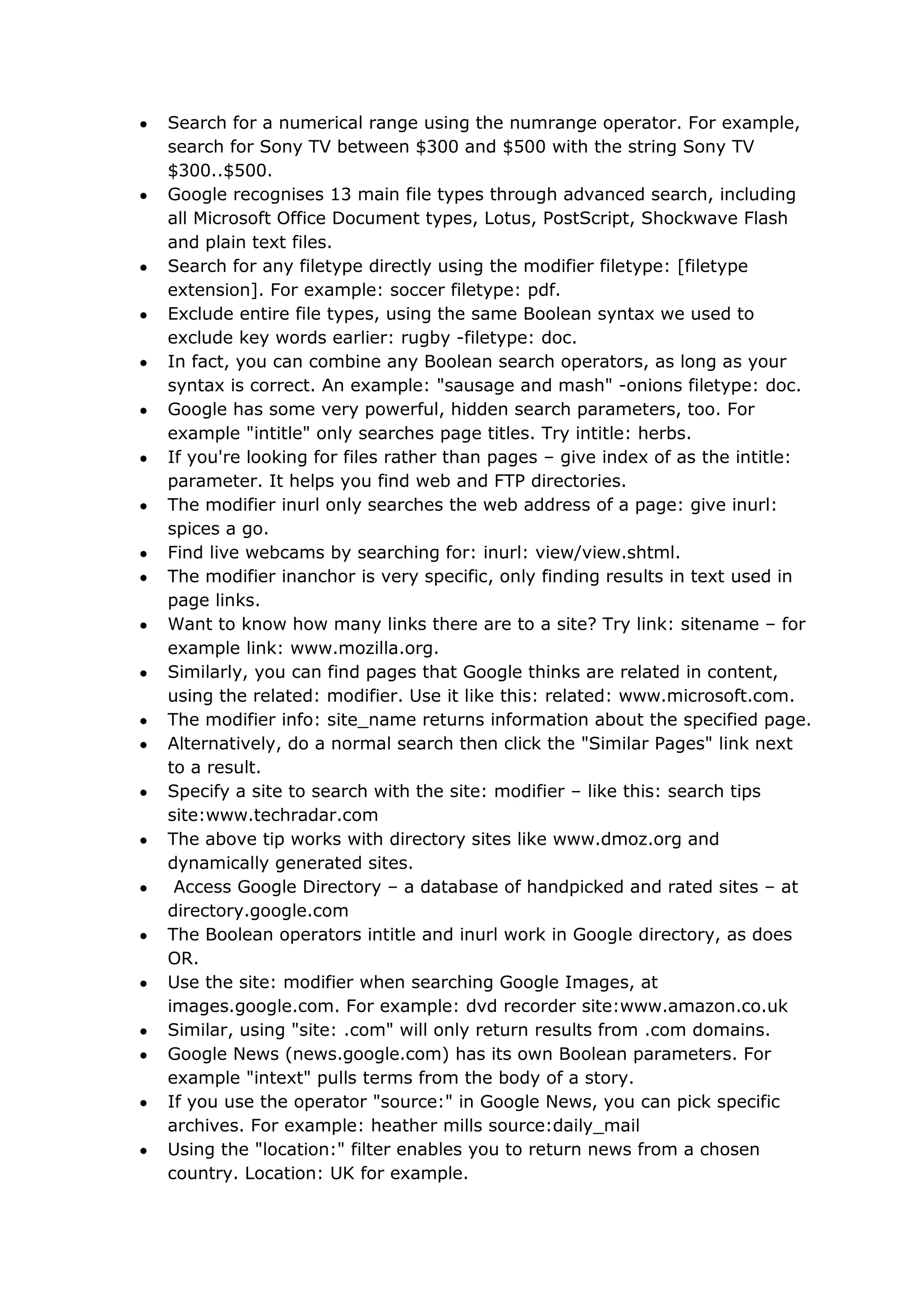 Tips for searching more effectively on the internet include using different search engines and browsers, keywords, phrases in quotes, Boolean operators like AND and OR, and refining searches based on file type, site, or other modifiers. Proper use of search syntax along with understanding how to interpret and refine results can help users find what they are looking for more efficiently.