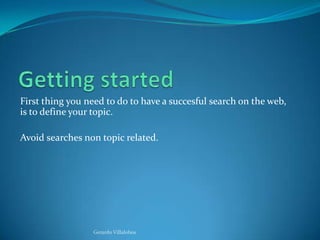 To effectively search the internet, first define your topic clearly to avoid irrelevant results. Then look for 6 to 8 maximum keywords that are preferably nouns and objects to use in the search, avoiding verbs. Using phrases in quotation marks can make the search more exact. It is also important to be patient as the desired results may not come on the first attempt, and to focus the search on reliable sites for the best results.