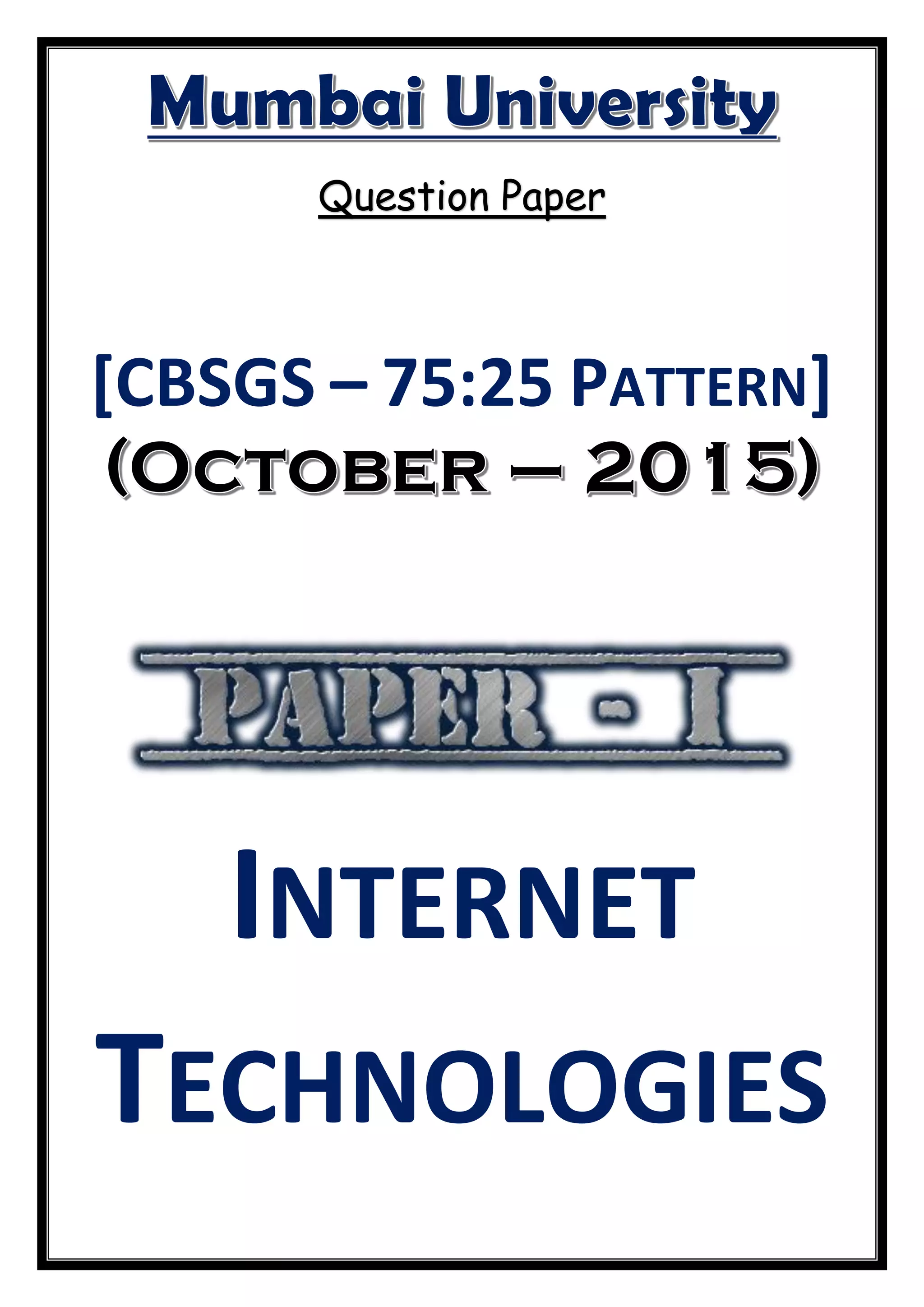 The document is a question paper for an Internet Technologies course at Mumbai University, following a 75:25 assessment pattern, for B.Sc.IT students in their sixth semester. It consists of multiple questions covering various topics such as IP addressing, network layers, TCP, SCTP, email scenarios, and network protocols. Students are required to attempt specified questions, draw diagrams where necessary, and make assumptions as needed.