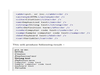 • <h1>This is <i>italic</i> heading</h1>