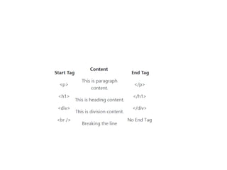 •An HTML element is defined by a starting tag. If the element