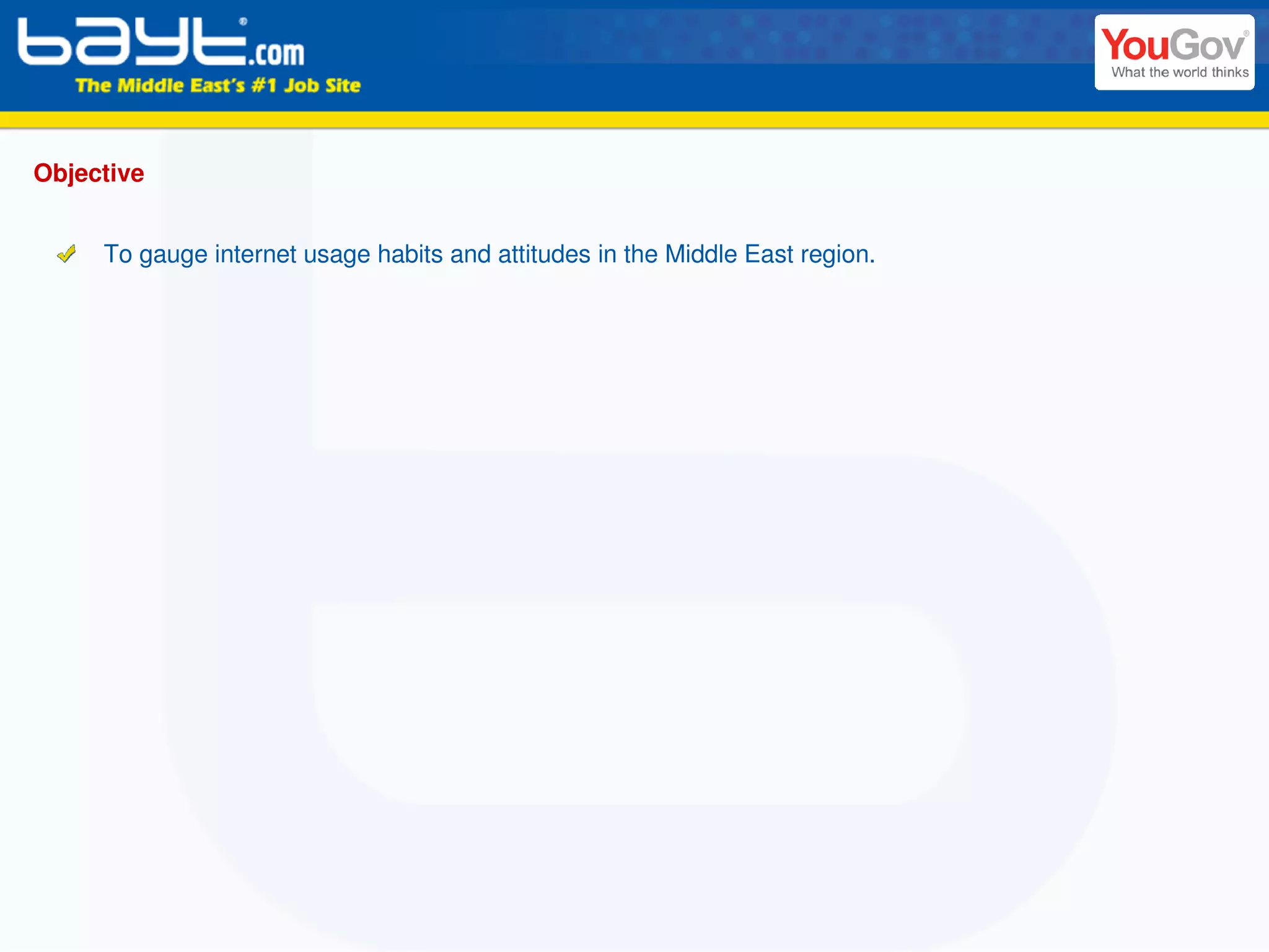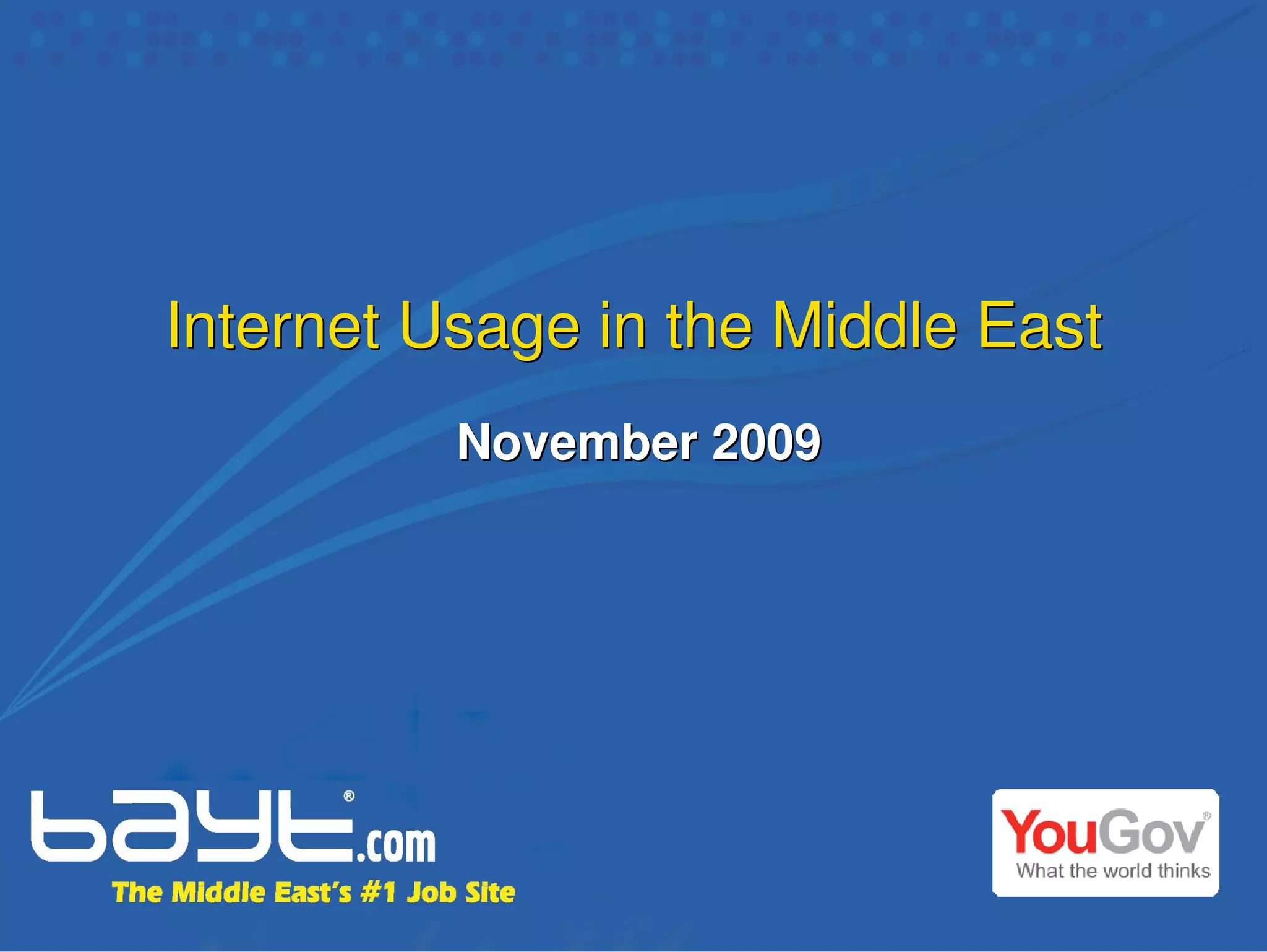 The document summarizes the results of an online survey about internet usage in the Middle East conducted between October 30th and November 22nd, 2009 with 13,847 respondents. Some key findings include: