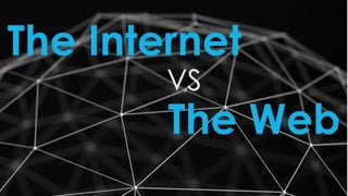 The document explains the difference between the Internet and the World Wide Web, emphasizing that they are not the same. The Internet is a global network of interconnected computers, while the Web is a system of servers supporting specially formatted documents. The Web relies on the Internet to function, acting as software to retrieve requested information.