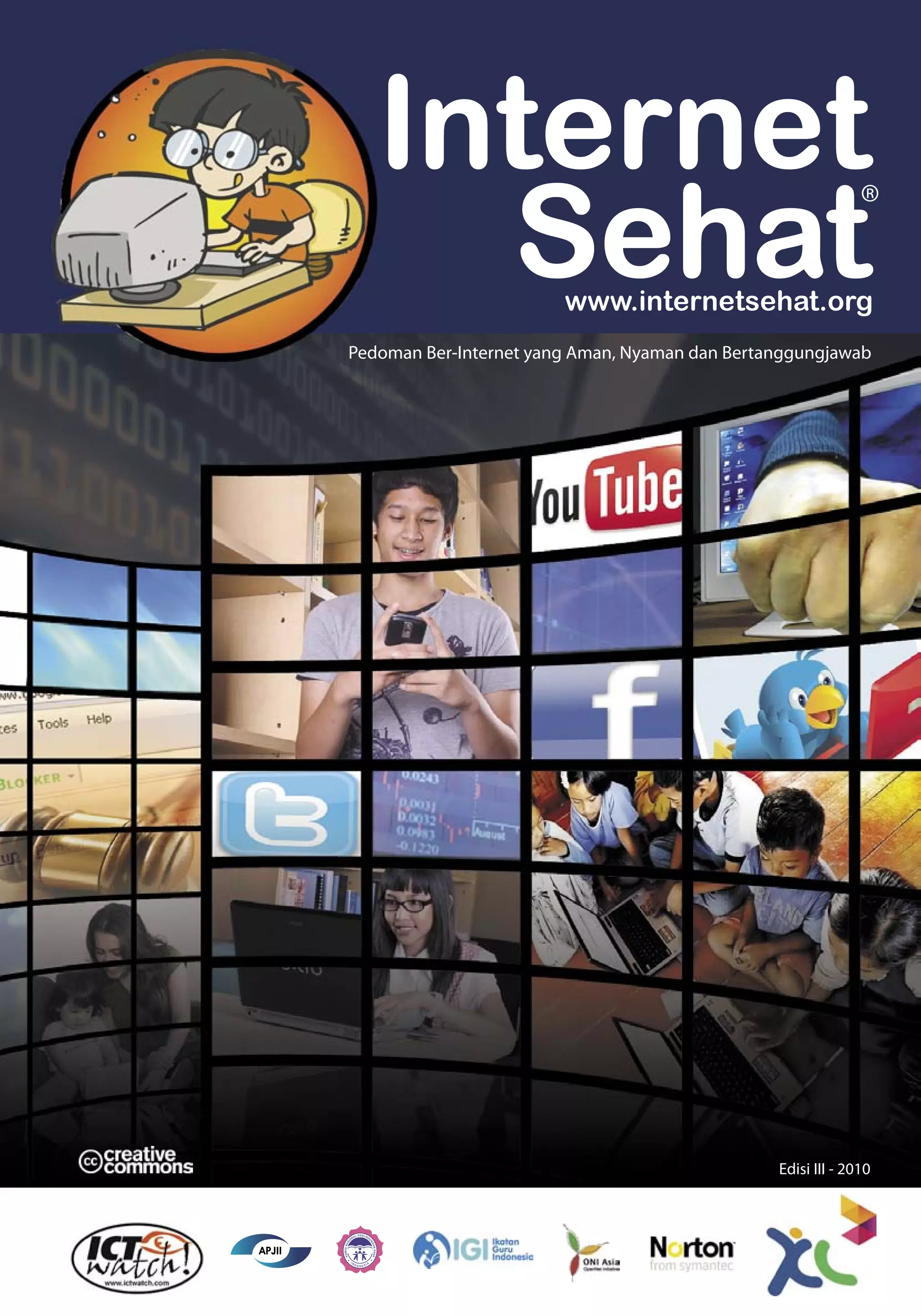 Buku panduan Internet Sehat memberikan pedoman bagi pengguna internet untuk berinternet dengan aman, nyaman, dan bertanggung jawab. Buku ini memuat tips berkomputer dan berinternet untuk keluarga dan anak-anak, pedoman untuk sekolah dan guru, serta rekomendasi situs dan blog yang sehat. Seluruh konten buku dilindungi hak cipta dan dapat digunakan non-komersial dengan lisensi Creative Commons.