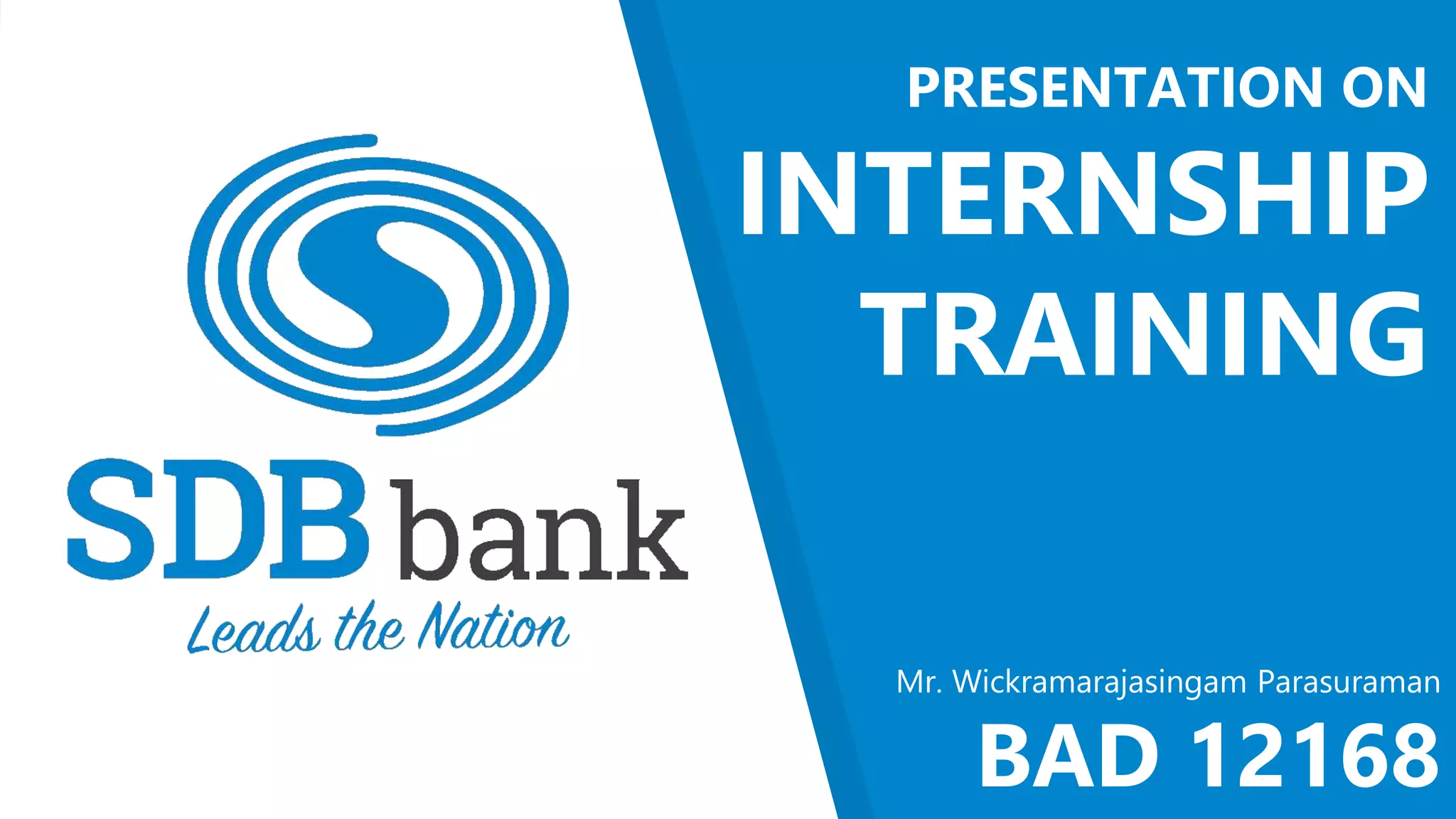 The presentation outlines an internship at SDB Bank PLC, detailing the organization's background, product offerings, and activities performed by the intern. Key learnings include problem-solving, teamwork, and communication skills, while challenges encompassed system access and managing workload. Recommendations emphasize improving competitiveness, customer retention strategies, employee training, and effective time management.