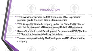 - TTPL was incorporated in 1946 to produce titanium dioxide from ilmenite and is a public sector company owned by the Government of Kerala.
