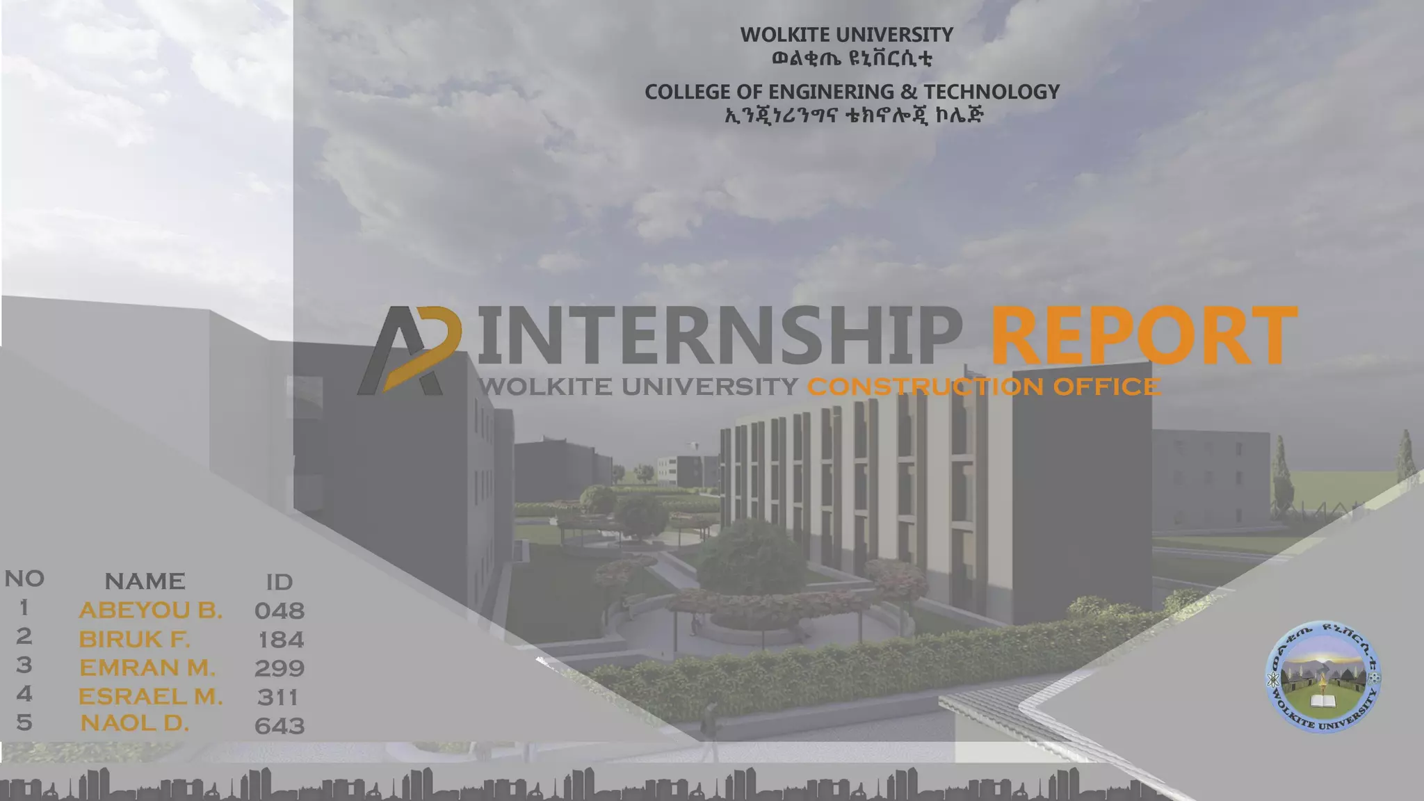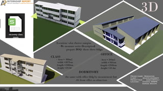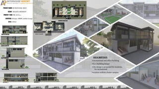 The document acknowledges God and thanks various organizations and individuals for their support of the internship program. It expresses gratitude to Wolkite University's Department of Architecture for facilitating the internship, as well as to the university's construction project office and supervisor Architect Yidnekachew Ayele. Thanks are also given to the Head of the Architecture Department Architect Oliyad Mitiku and others who provided assistance.