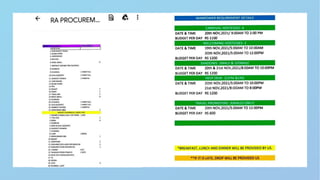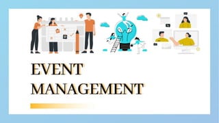 Event management involves organizing planned occasions, focusing on creating memorable experiences through coordination and professional selection. The document describes the responsibilities of managing events, such as budgeting, guest communication, and material procurement, along with skills gained from the process like communication and organization. It also mentions a specific wedding event the author interned for, highlighting collaboration and logistical tasks.
