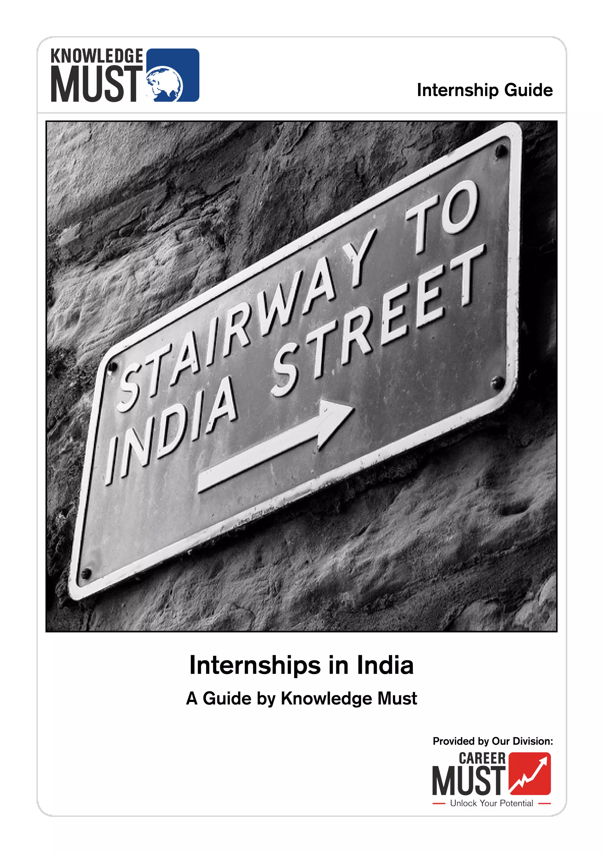 The document serves as a comprehensive internship guide for individuals looking to work in India, addressing key questions about visas, living costs, and cultural adjustments. It emphasizes the advantages of internships in India, such as the opportunity for professional growth and cultural immersion. It also highlights the logistical support provided by 'Knowledge Must', a service provider specializing in intercultural solutions and internships.