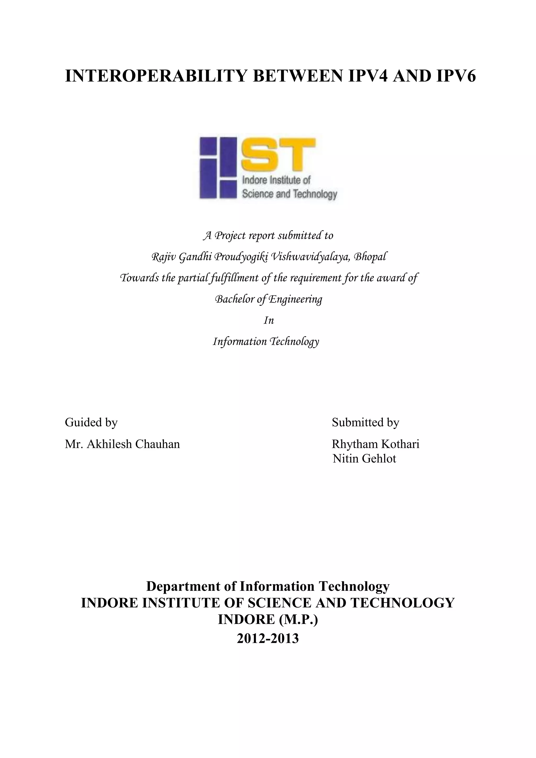 This document discusses interoperability between IPv4 and IPv6. It outlines challenges with the transition from IPv4 to IPv6 including ensuring minimal downtime and maintaining network reachability and security. It proposes using tunneling techniques like Generic Routing Encapsulation (GRE) to transport IPv6 packets over an IPv4 infrastructure and allow dual stack implementations. The project aims to address scalability between IPv4 and IPv6 using the OSPF routing protocol and virtualizing physical links with Cisco IOS to enable IPv6 multicast routing.