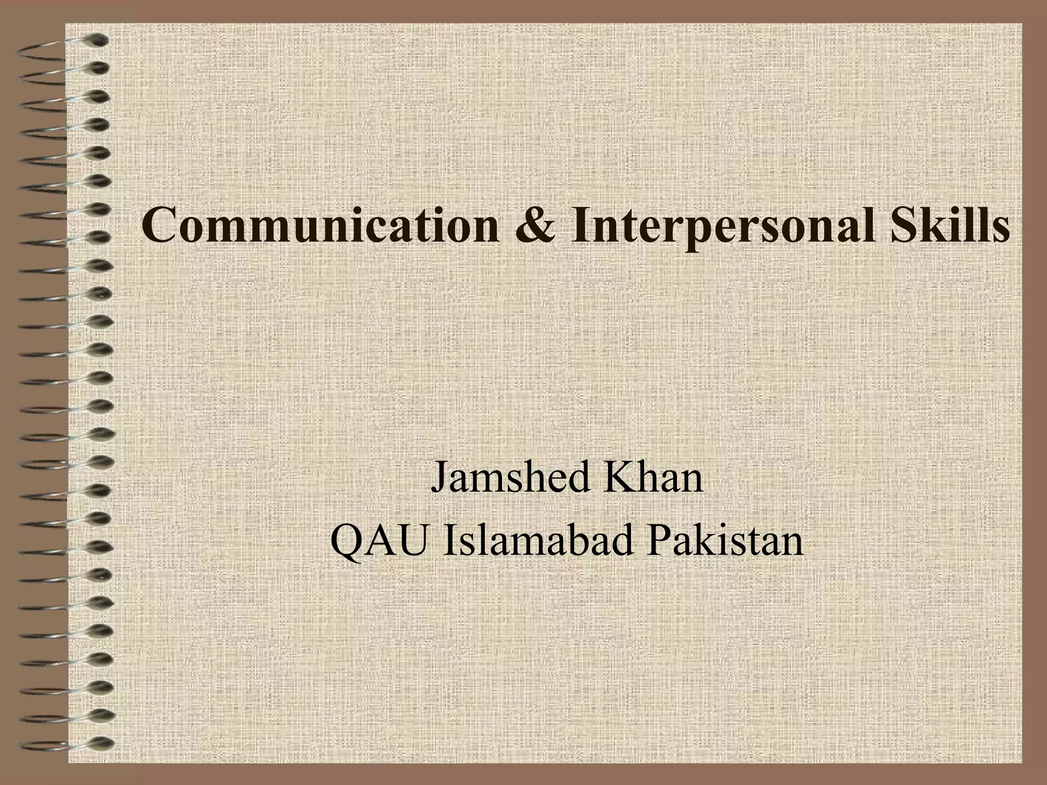Effective communication involves using language appropriate to the audience's understanding level, ensuring the intended message is received, and developing open and honest relationships. Interpersonal communication skills include listening, questioning, providing feedback, and handling conflict. Such skills help develop self-awareness, acknowledge others' interests, and manage diversity to get the best from team members. Barriers like lack of skills, interest or feedback can interrupt the communication process between a sender and receiver.