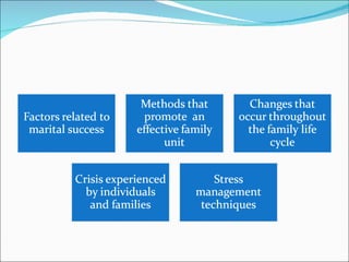 This course at McNeil High School taught by Ms. Jackson examines how relationships between individuals and family members affect quality of life. Students learn human development knowledge and skills to improve themselves, strengthen relationships, support family wellness, handle adult responsibilities, and pursue careers in counseling or mental health. The course provides knowledge and skills in human development.