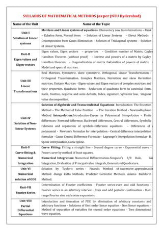 SYLLABUS OF MATHEMATICALMETHODS (as per JNTU Hyderabad)
