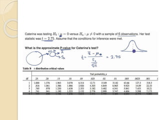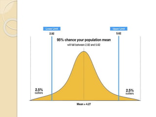 This document discusses statistical concepts like variability, standard deviation, confidence intervals, p-values, and distributions. It provides examples to illustrate variability and how it is important when evaluating investments. It also includes tables showing output from statistical tests run on multiple variables, including sample sizes, means, standard deviations, and confidence intervals. The conclusion emphasizes the relationships between sample size, mean differences, and p-values in determining confidence intervals and statistical significance.