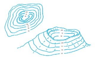 Dokumen tersebut membahas tentang interpretasi peta bentuk muka bumi, termasuk faktor pembentuk relief muka bumi, jenis-jenis peta dan skala peta, serta interpretasi simbol dan bentuk-bentuk geografis yang terdapat pada peta."