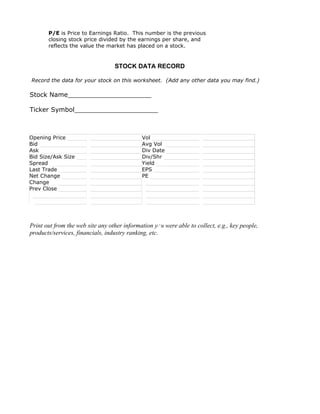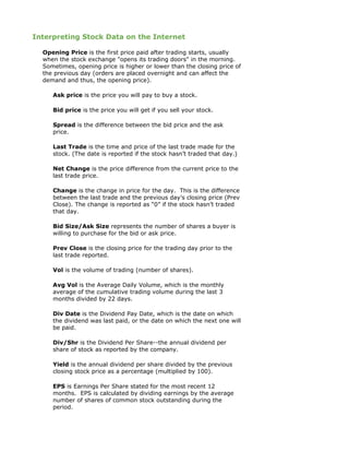 Stock Market Lesson Sequence DOC
