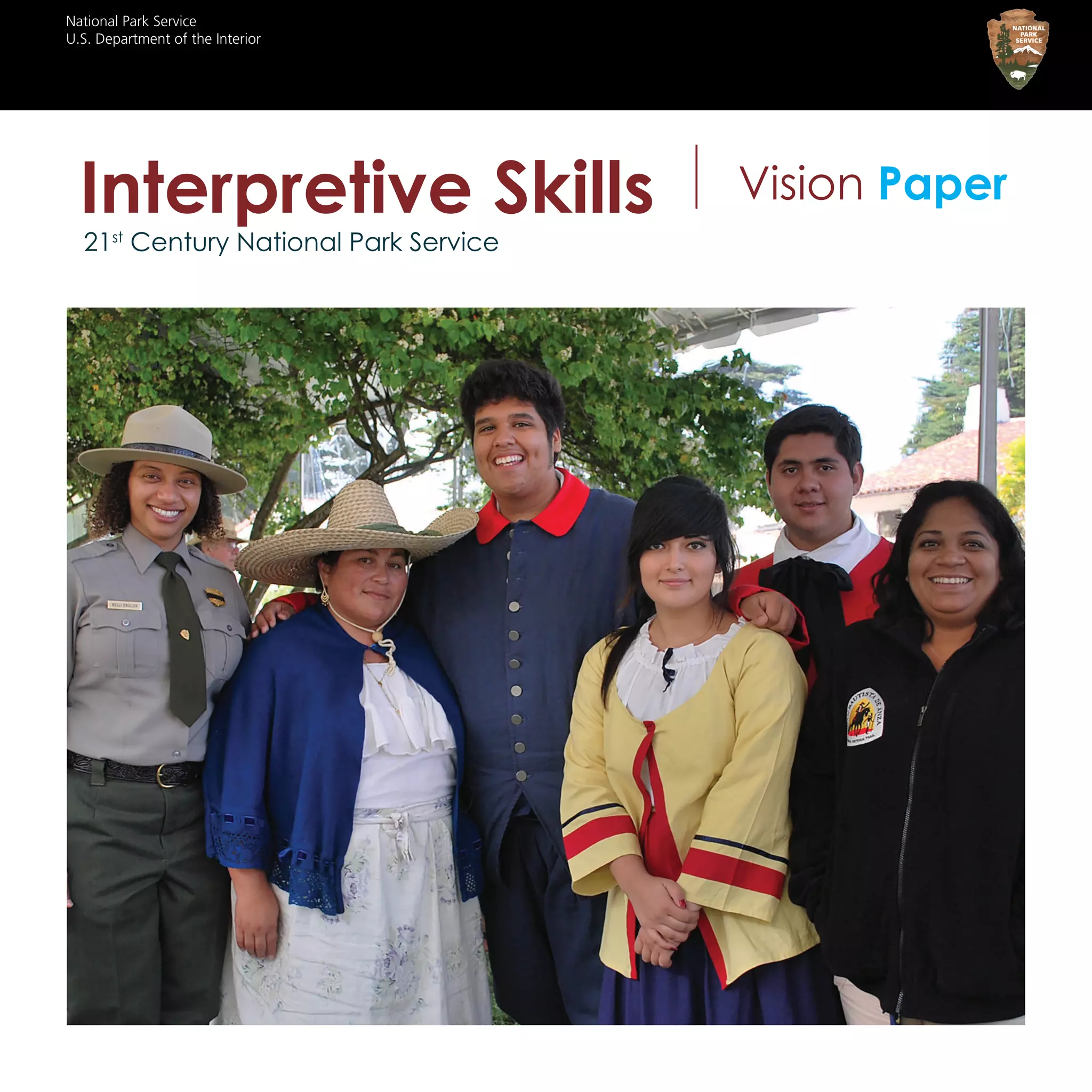 The document presents a vision for 21st century interpretive skills for National Park Service interpreters. It discusses trends affecting society like lifelong learning, globalization, and the digital era that present challenges and opportunities for interpretation. The vision calls for interpreters to have mastery in three key areas: audience advocacy, innovative leadership, and disciplinary and technical expertise. It recommends aligning training, recruitment and positions with the needs of developing interpreters with these 21st century competencies. The vision is meant to help the NPS better serve the public and foster lifelong learning.