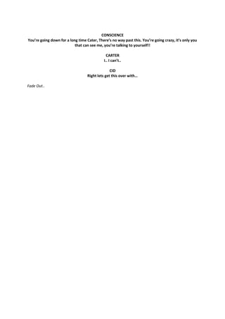 4) The camera then shows Carter is alone in the room, indicating he is talking to himself, not an actual conscience. He appears to be breaking down under the pressure.