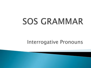 This document defines and provides examples of common interrogative pronouns in English including: who, whom, whose, what, which, how, when, where, and why. It explains that who is used as a subject, whom as an object, and whose to indicate possession. What can refer to things, people, or situations. Which is used to choose between specific options. How is used to ask about manner, degree, frequency, quantity or duration. When asks about time and where asks about location. Why asks about reasons or causes.