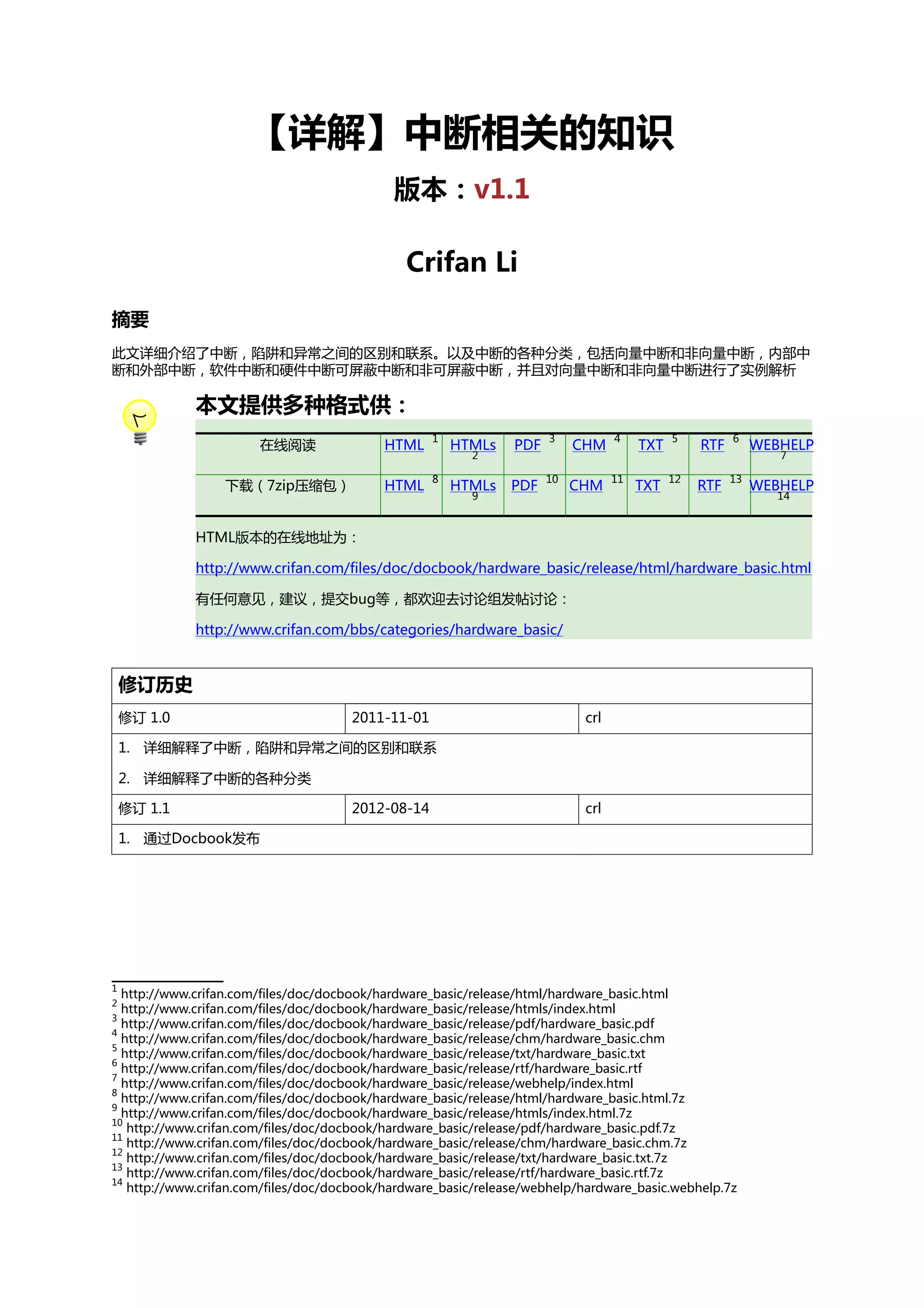本文深入探讨了中断、异常和陷阱的区别与联系,以及中断的各种分类,包括向量中断和非向量中断等。中断是CPU与外设间交互效率的重要机制,它通过允许CPU在等待外设时继续执行其他指令来提高效率。文中还提供了多种在线阅读和下载格式的链接,包括HTML、PDF等。