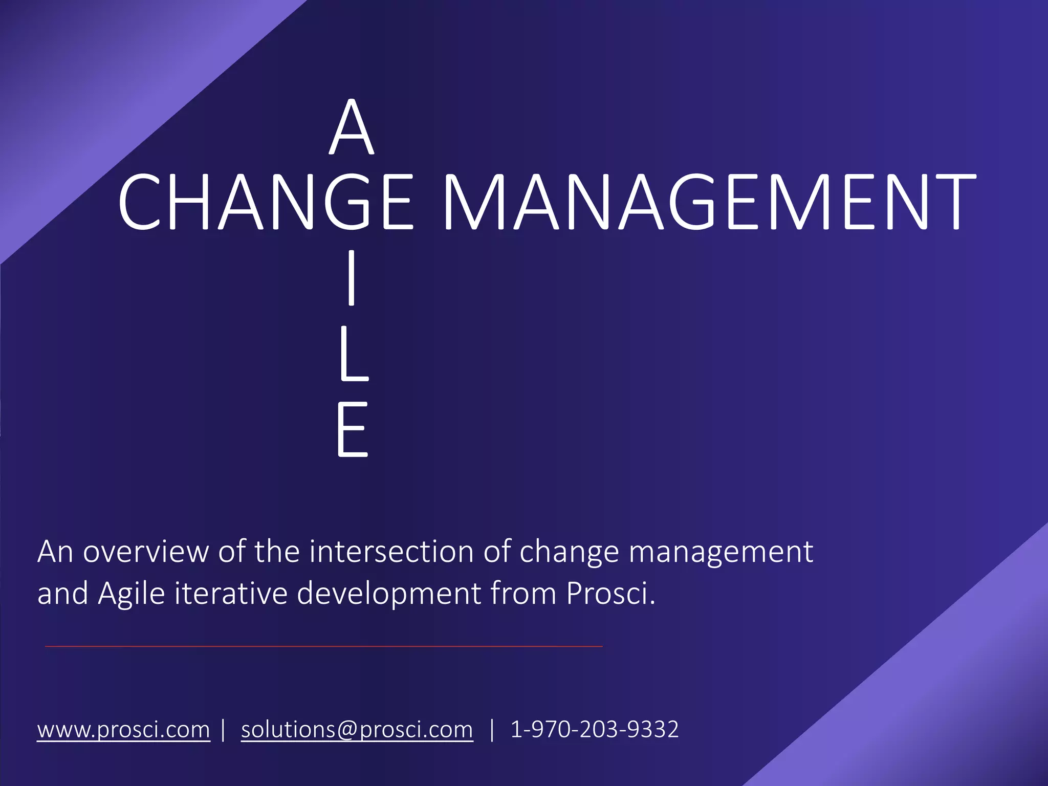 This document provides an overview of change management and its intersection with Agile iterative development approaches. It discusses the foundations of Agile, comparing its iterative sprint approach to traditional waterfall models. It also examines managing change "to" and "in" Agile. The Prosci ADKAR model for individual change is presented as a framework that can be applied within each Agile sprint to help people change as needed to achieve benefits. Change management practices like communication and training need to be adapted to the faster, more iterative pace of Agile while still focusing on preparing and supporting individuals through their change journeys.