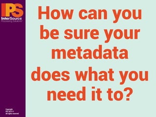 The document discusses enhanced metadata, focusing on the integration of additional subject headings. It explores intersource processing solutions that improve data organization and accessibility. Overall, the emphasis is on optimizing metadata for better information retrieval.