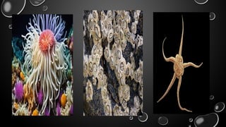 Intertidal zones are coastal areas that are exposed during low tide and submerged during high tide, featuring various layers: splash and spray zone, high-tide zone, mid-tide zone, and low-tide zone. Each layer supports different organisms adapted to their unique environment, with specific characteristics necessary for survival amidst changing conditions. Below the intertidal zones lies the subtidal zone, which remains underwater and provides a more stable habitat for marine life, such as seals and sea otters.