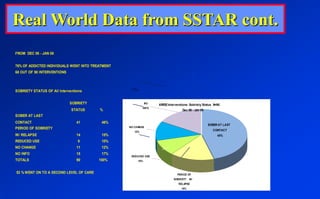 - Research on the ARISE model found over 80% of substance abusers entered treatment or self-help, often at Level I involving just one call. Involvement of more family/friends and parental involvement predicted better outcomes.